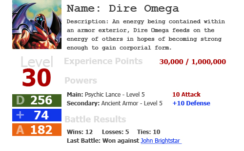 As you gain experience points, you’ll also gain points to spend on your character. XP is dolled out based on log-ins, initiating battles, winning battles, etc. Every thousand experience points will earn one point to spend on your character, every ten thousand points levels you up. Logging in each day earns you 100 experience points. This means, if you just logged in every day, you could earn 3 points to spend on your character every month.