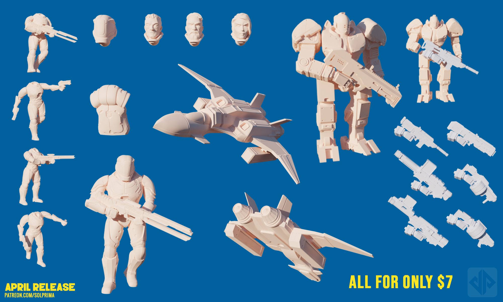 We recently launched our second month of models on Patreon which include a character model in different poses, a mech and a space fighter. We are hoping to add around the same number of models each month and it’s a tall order and requires far more capital and time than I think people truly understand.