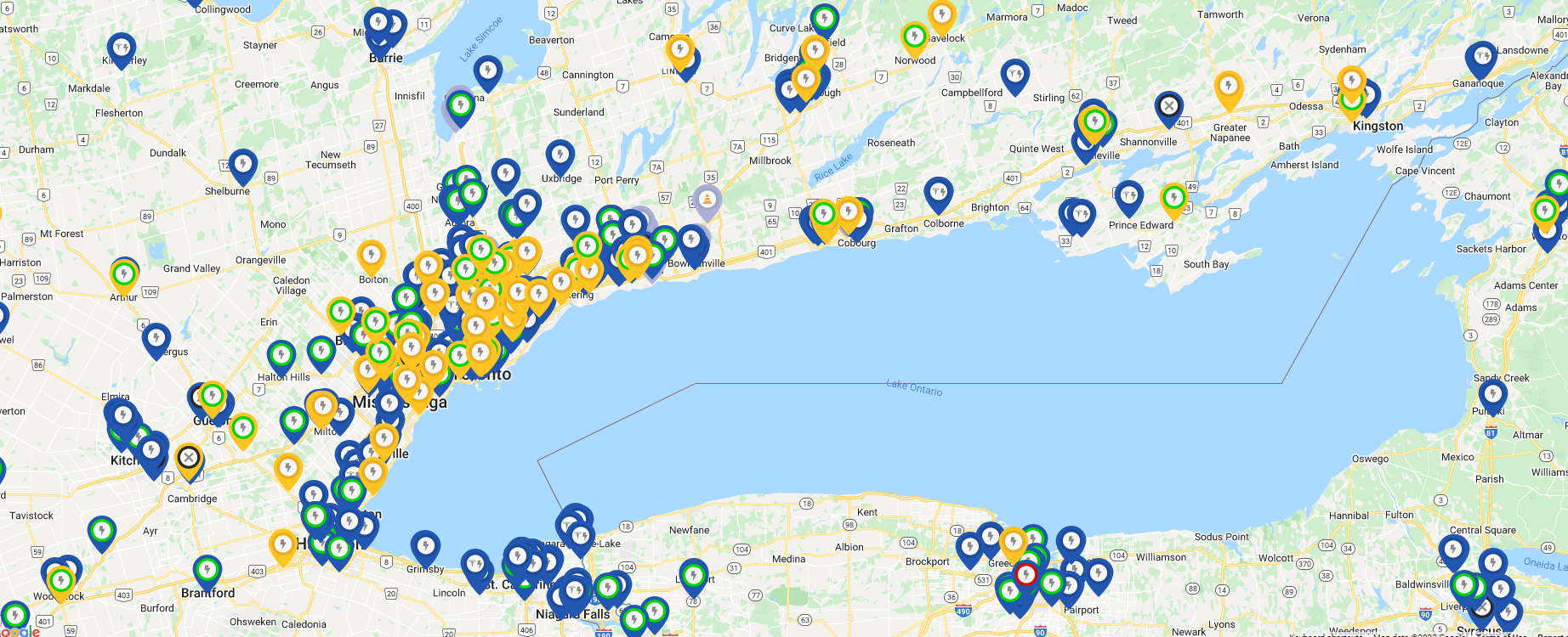 As you can see, we had to add a bit of extra driving on this as the optimum route is 375 kilometers but we’d have to go around four hundred due to needing to stop in Barrie to get charged up. In ideal weather, we wouldn’t have to stop anywhere on our journey to Wasaga Beach, but we don’t have ideal weather often in Ontario. So we would probably stop in both Cobourg and Barrie for recharging. During the middle of the summer, we’d need to stay a bit longer in Cobourg and maybe Barrie to be safe with the range we need for this journey.